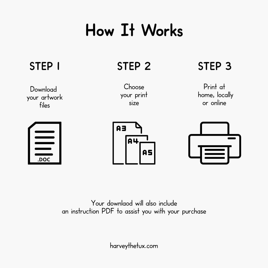 To help you print your new artwork a simple how-to print guide is also included in your digital download.